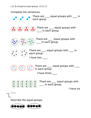 Equal groups math worksheets. A-Z Math Vocabulary. Resources for Games, Worksheets & more … WebA Comprehensive math vocabulary based on Common Core State Standards. Explore definitions, examples, games, worksheets & more. Search Printable Multiplication As Equal Group Worksheets WebBrowse Printable Multiplication As Equal Group Worksheets. Award winning educational materials designed to help kids succeed. ... Dividing arrays into equal groups will teach your 3rd grader that multiplication can be shown visually! Use this multiplication worksheet to practice. ... Calling all math-bots! Use the equal group drawings to solve ... IXL | Learn 3rd grade math WebIXL offers hundreds of third grade math skills, lessons, and games to explore and learn! Not sure where to start? Go to your personalized Recommendations wall to find a skill that looks interesting, or select a skill plan that aligns to your textbook, state standards, or standardized test.. IXL offers hundreds of third grade math skills, lessons, and games to explore and … Join LiveJournal WebPassword requirements: 6 to 30 characters long; ASCII characters only (characters found on a standard US keyboard); must contain at least 4 different symbols;